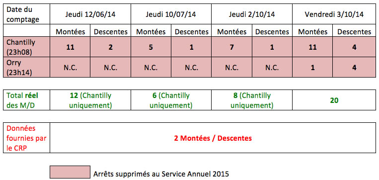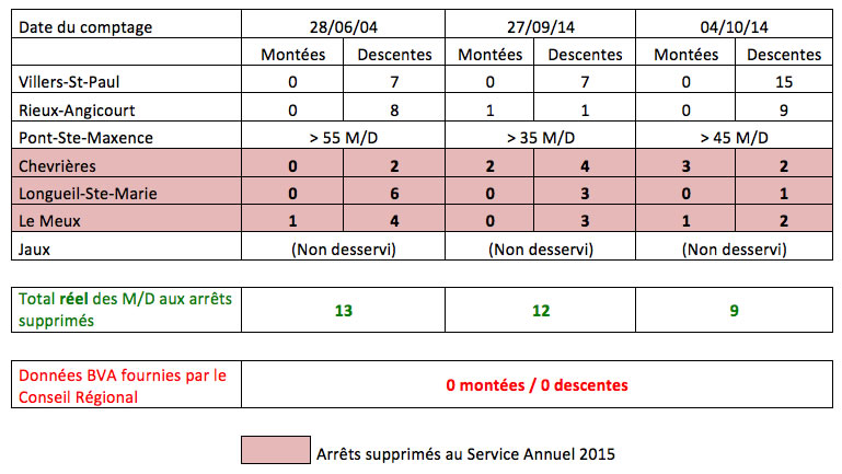 Résultat : entre 9 et 13 mouvements comptabilisés par nos soins dans les points d’arrêts qui ne seront plus desservis, contre 0 selon le Conseil Régional.
