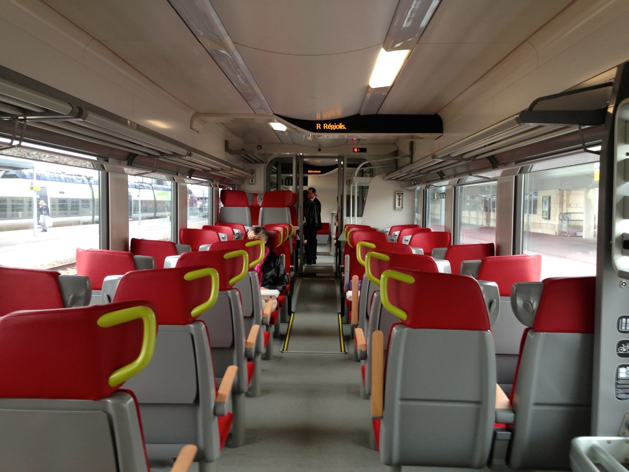 Régiolis (intérieur)Régiolis est un train entièrement accessible aux personnes à mobilité réduite. En effet, aucune marche n’entrave les déplacements à l’intérieur de la
